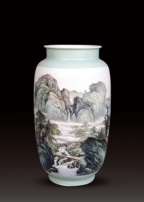 盛北京先生,1973年生,中青年山水瓷畫領軍人物,江西省工藝美術師,安徽黄山學院客座教授。曾得到當代陶瓷教父、國畫大師黄美堯的親身教誨和當代雪景大王凌宗正的技法傳授,其擅長青緑山水、粉彩雪景山水,兼繪花鳥、走獸。盛北京從事陶瓷藝術創作二十余載,創作成果豐碩,作品屢次獲獎,《溪山烟雨》瓷瓶2014年獲“中國陶瓷100”金獎;《瑞雪》方瓷板2015年獲“第五届中國(浙江)工藝美術精品博覽會”金獎。作品被江西省工藝美術館、山西省工藝美術館、寧夏博物館館藏。