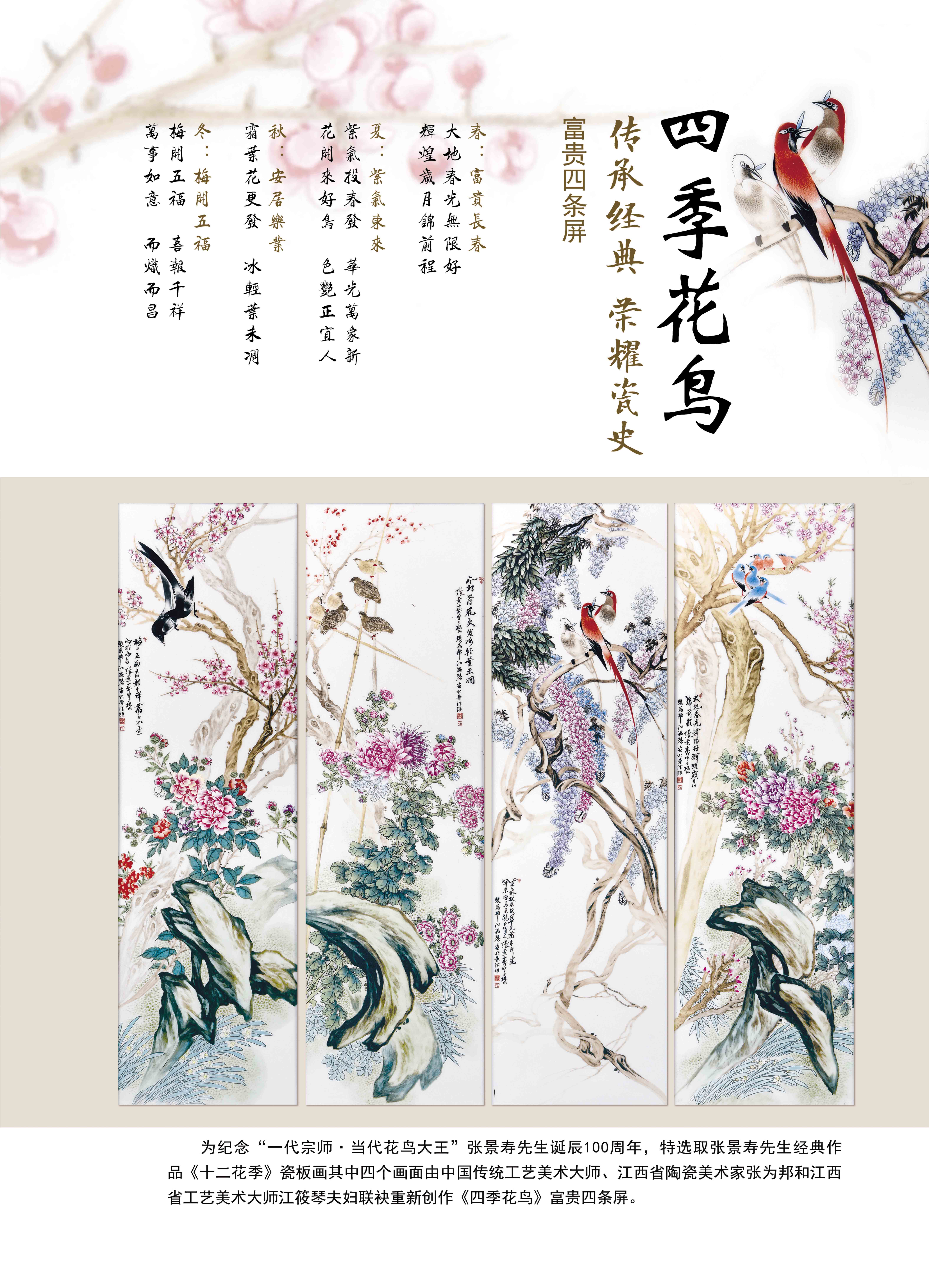《四季花鸟》富贵四条屏