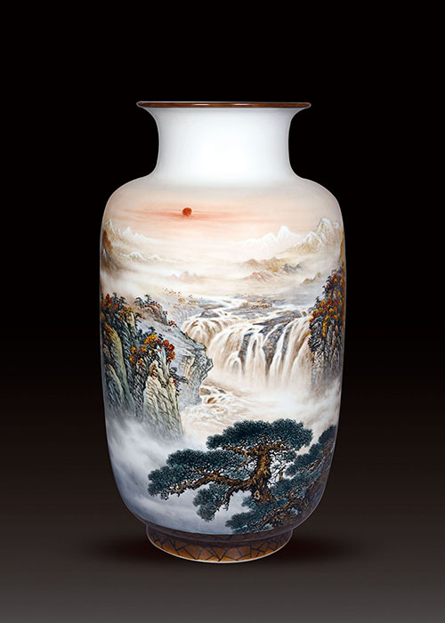 盛北京先生,1973年生,中青年山水瓷畫領軍人物,江西省工藝美術師,安徽黄山學院客座教授。曾得到當代陶瓷教父、國畫大師黄美堯的親身教誨和當代雪景大王凌宗正的技法傳授,其擅長青緑山水、粉彩雪景山水,兼繪花鳥、走獸。盛北京從事陶瓷藝術創作二十余載,創作成果豐碩,作品屢次獲獎,《溪山烟雨》瓷瓶2014年獲“中國陶瓷100”金獎;《瑞雪》方瓷板2015年獲“第五届中國(浙江)工藝美術精品博覽會”金獎。作品被江西省工藝美術館、山西省工藝美術館、寧夏博物館館藏。